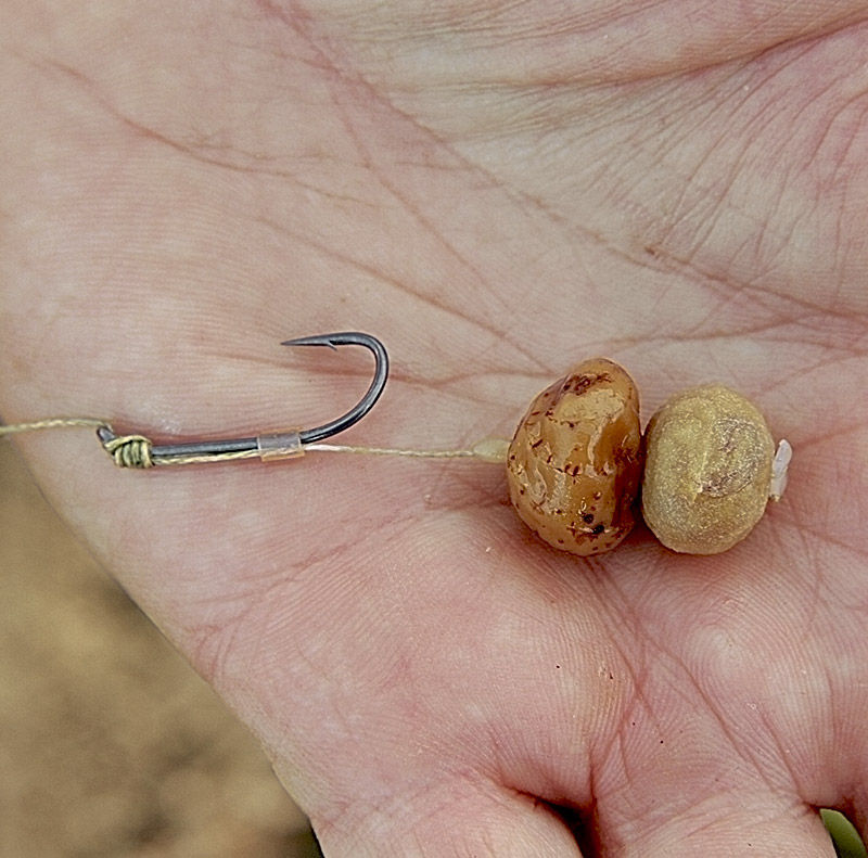 Чем мягче волос, тем лучше разворачивается крючок. Поэтому при использовании жестких поводковых материалов иногда приходится использовать для волоса другой более мягкий материал. В основном это касается поводков из флуорокарбона. Насадка на жестком волосе из лески не будет выскакивать изо рта рыбы, и предоставит карпу дополнительное преимущество.
